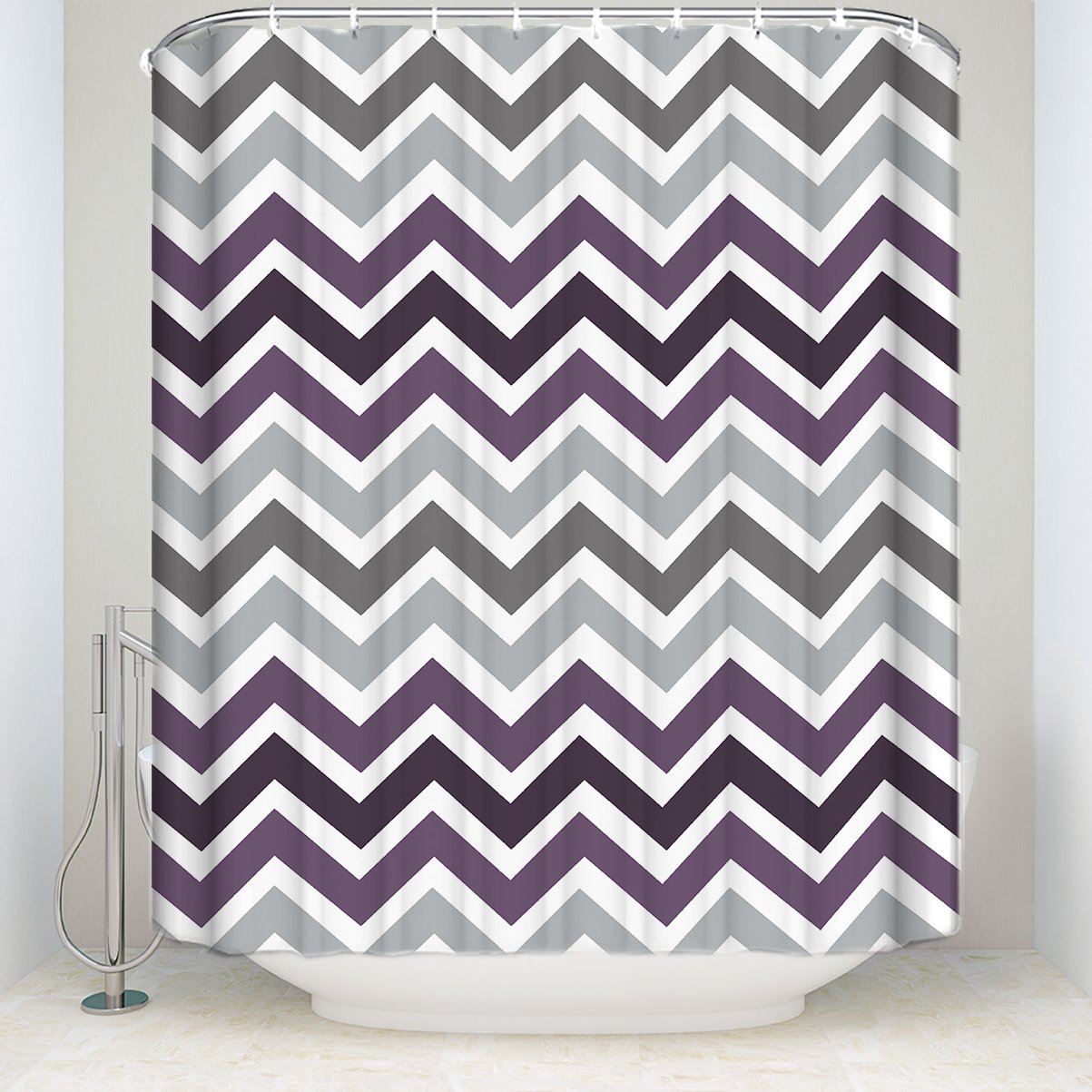 Amazon Com Chevron Shower Curtains Sets Multicolor Zig Zag Grey White And Purple Fabric Bathroom Decor 72x72inches Home Kitchen