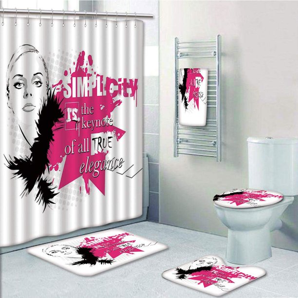 Prtau Lady Face With Makeup Simplicity For Elegance Inspirational Vogue 5 Piece Bathroom Set Shower Curtain Bath Towel Bath Rug Contour Mat And Toilet Lid Cover Walmart Com Walmart Com