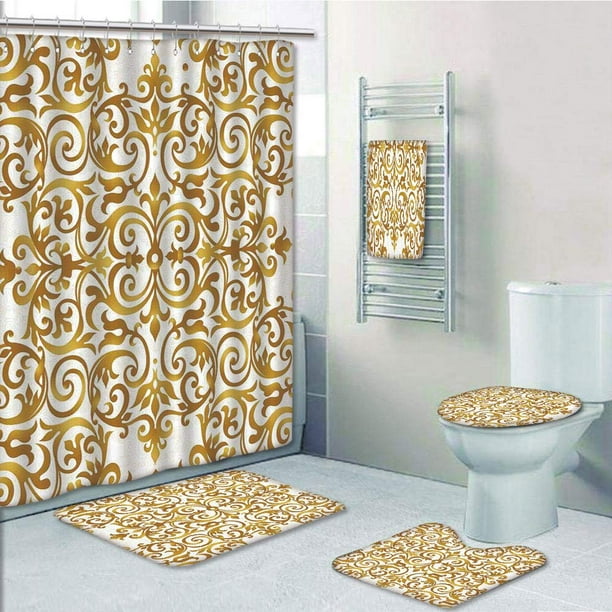 Prtau Victorian Golden Lace Antique Baroque Oriental Ottoman Royal Square Gold 5 Piece Bathroom Set Shower Curtain Bath Towel Bath Rug Contour Mat And Toilet Lid Cover Walmart Com Walmart Com