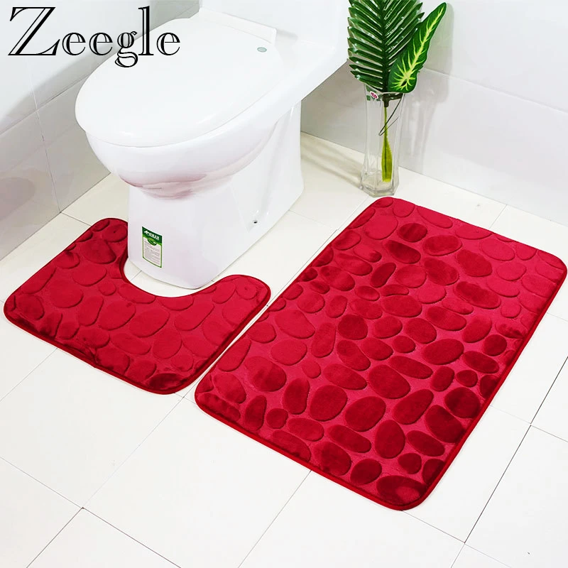 Zeegle Bath Mat Set Bathroom Set Toilet Foot Rug Anti Slip Bathroom Carpet Toilet Seat Cover Shower Room Absorption Floor Mat Bath Mats Aliexpress