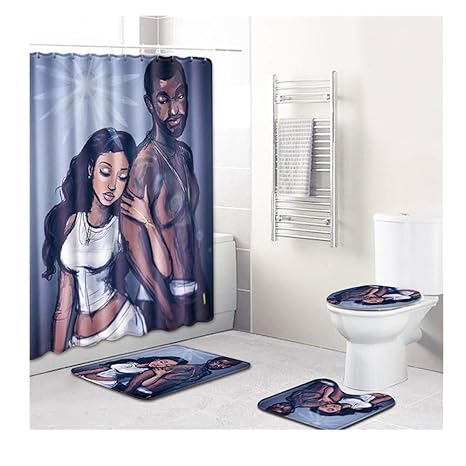 Buy Shower Curtain Bathroom Rugs Set Of 4 Waterproof Non Slip Bath Mat Bathroom Carpet Rug Toilet Seat Cover Toilet Pad Cover African American Women Online At Low Prices In India