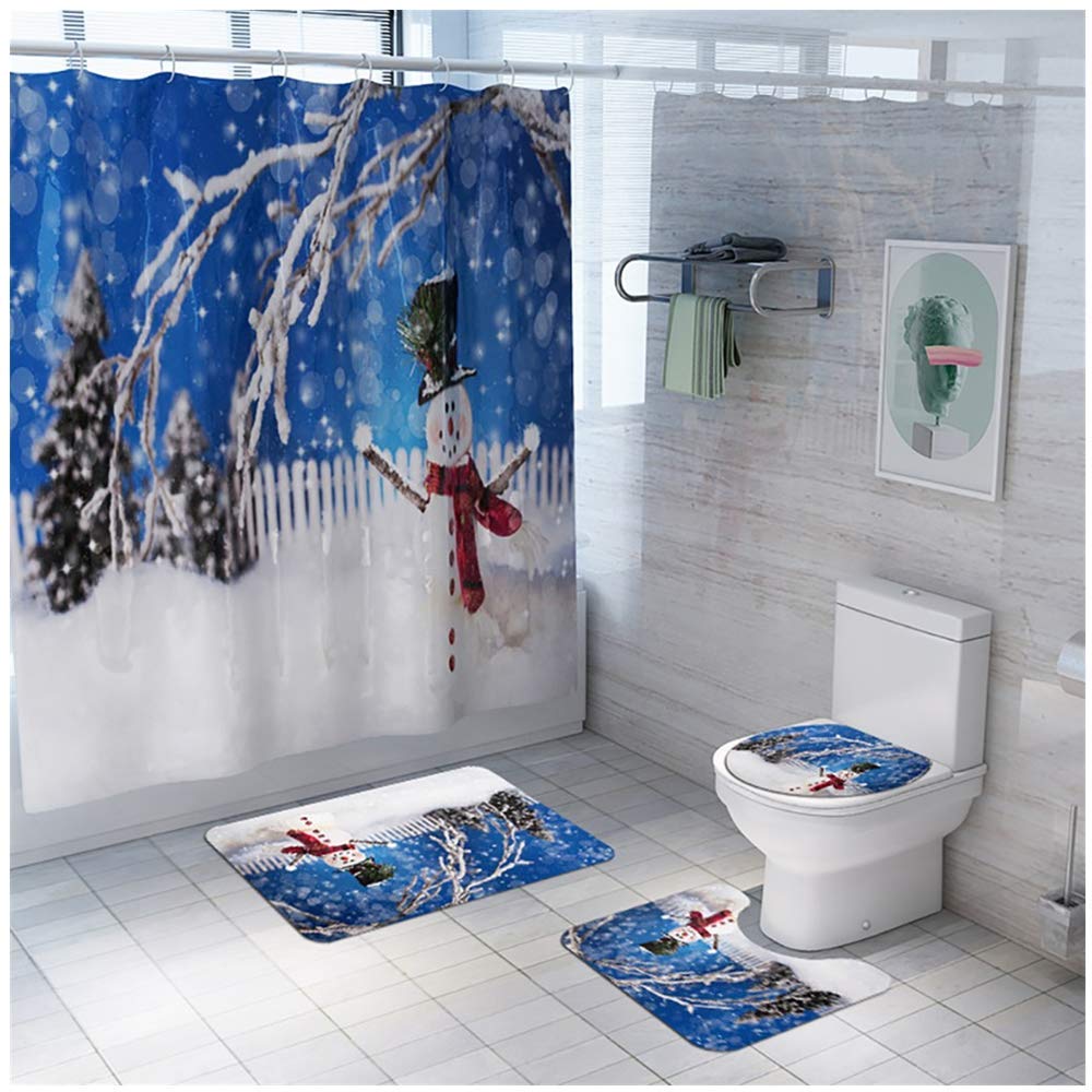 Buy Shower Curtain Bathroom Rugs Set Of 4 Waterproof Non Slip Bath Mat Bathroom Carpet Rug Toilet Seat Cover Toilet Pad Cover Santa Deer Christmas Halloween Decor F Online At Low Prices In India