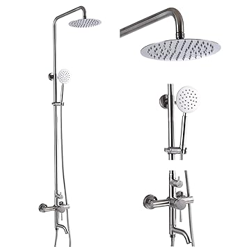 Stainless Steel Sus304 Silver Shower Faucet Set Wall Mount Triple Function Shower System 8 Inches Shower Head Bathroom Adjustable Hand Spray Rainfall Brushed Nickel Shower Faucet Complete Set Amazon In Home Improvement