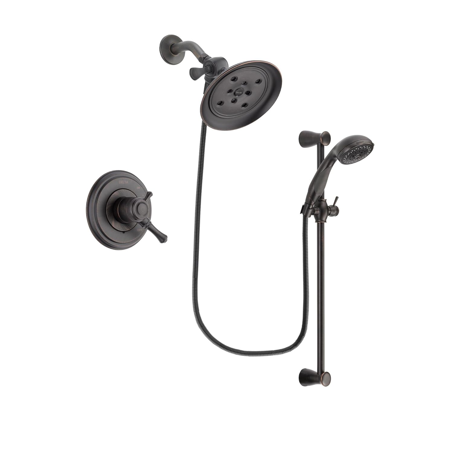 Delta Faucet Delta Cassidy Venetian Bronze Finish Dual Control Shower Faucet System Package With Large Rain Shower Head And Personal Handheld Shower Spray With Slide Bar Includes Rough In Valve Dsp2710v Amazon In Home Improvement