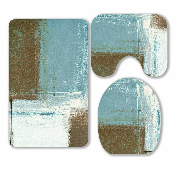 Pkqwtm Blue And Brown Abstract Art Painting 3 Piece Bathroom Rugs Set Bath Rug Contour Mat And Toilet Lid Cover Walmart Com Walmart Com