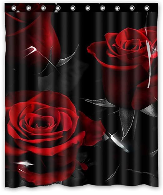 Amazon Com Kxmdxa Glam Fire Red Rose And Black Leaves Waterproof Polyester Bath Shower Curtain Size 60x72 Inch Home Kitchen