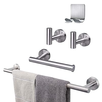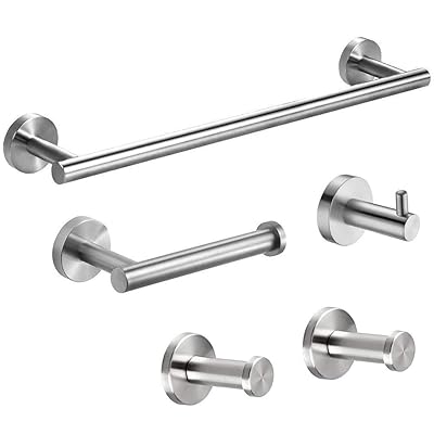 Amazon Com Sagetta Bathroom Hardware Set Nickel Stainless Steel 5 Piece Bathroom Accessories Set Includes 16 Inch Towel Bar 3 Robe Towel Hooks Toilet Paper Holder Brushed Nickel Tools Home Improvement