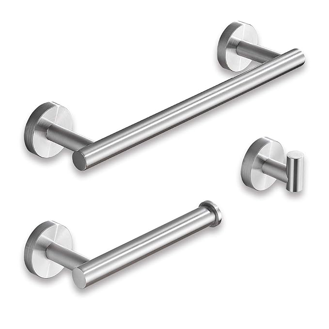 3 Pieces Bathroom Hardware Sets Brushed Nickel Contemporary Style Sus304 Stainless Steel Wall Mounted Includes 12 Towel Bar Toilet Paper Holder Robe Hooks Amazon In Home Kitchen