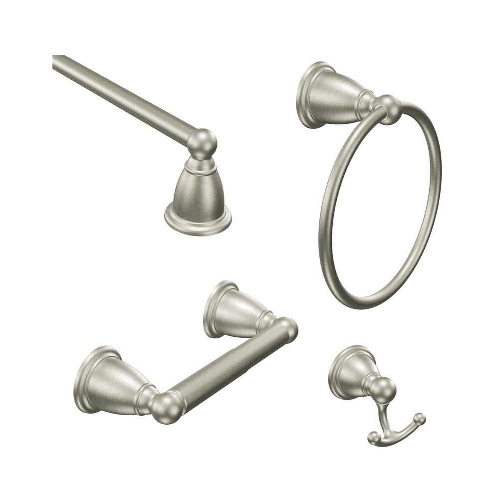 Delta Mandara 4 Pc Bath Hardware Set In Spotshield Brushed Nickel With Towel Ring Toilet Paper Holder 24 Towel Bar Hook 76273 Bn The Home Depot