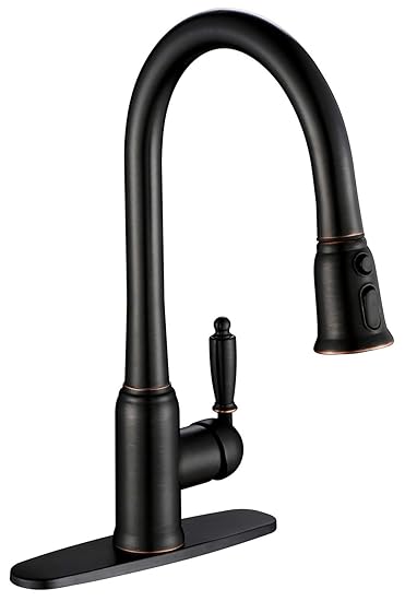 Ufaucet Oil Rubbed Bronze Kitchen Faucet Solid Brass Single Handle Pull Out Sprayer Pull Down Kitchen Sink Faucet With Deck Plate Amazon Com