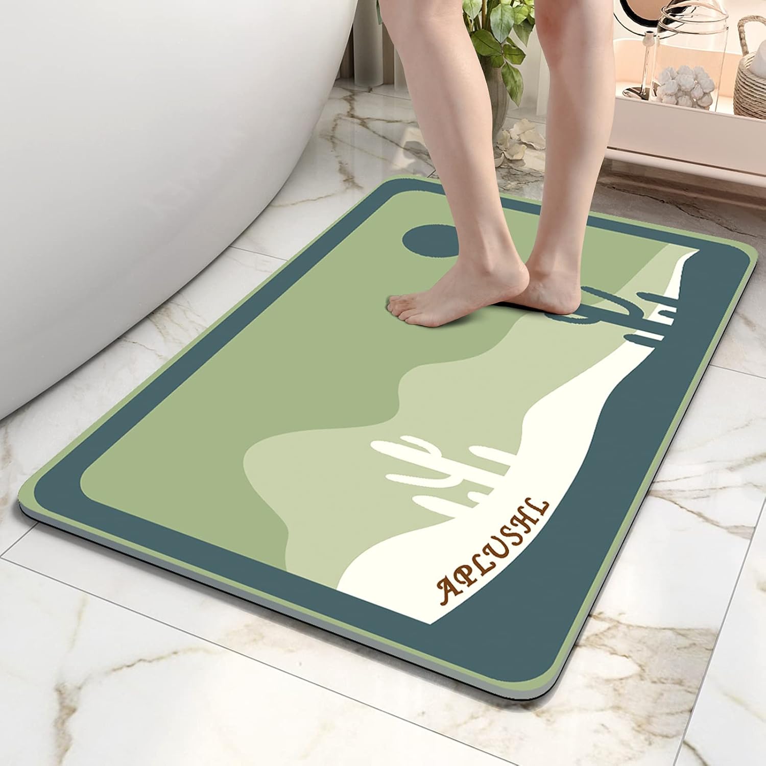 Buy Aplushl Resin Bath Rug Mat Non Slip Super Absorbent Soft Rugs Quick Drying Bathroom Mats Perfect Carpet With Special Hair Brush For Bathroom Laundry Bathtub Washhouse Corridor Farmhouse 17 X27 Green Online In