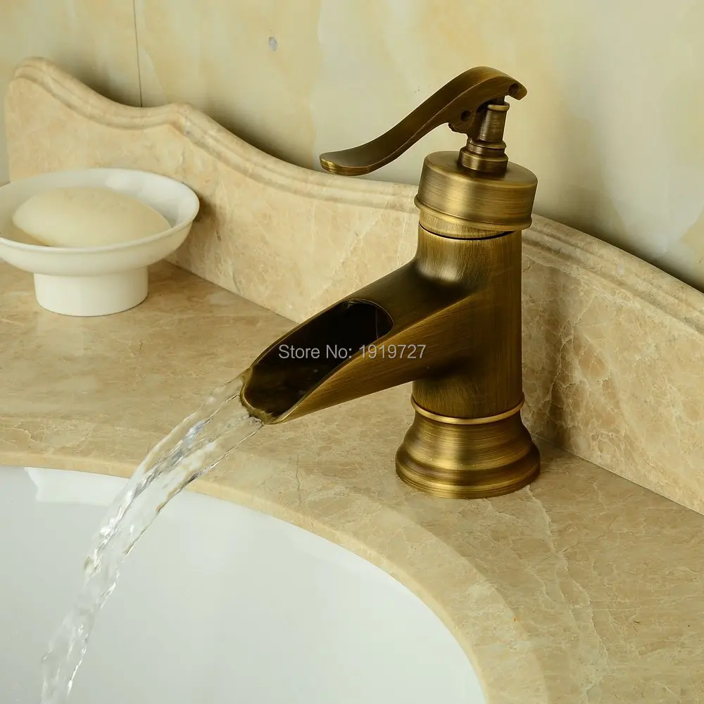 Ggstudy Antique Brass Waterfall Bathroom Sink Faucets Single Handle One Hole Deck Mount Lavatory Amazon In Home Improvement